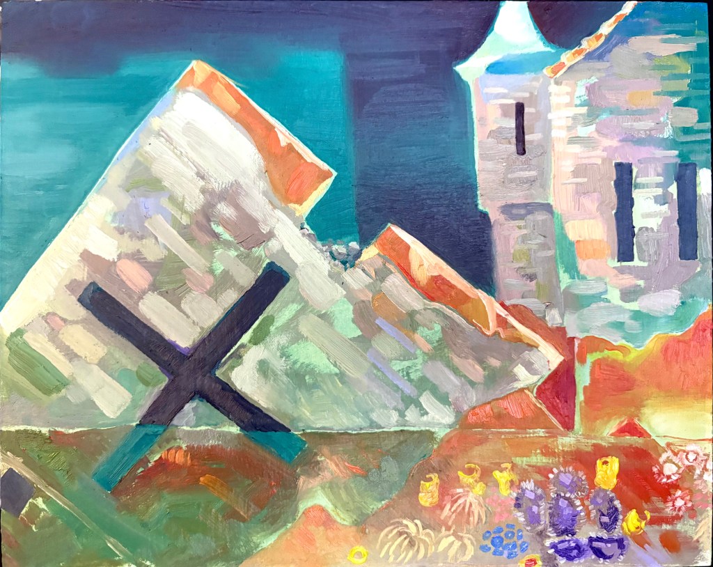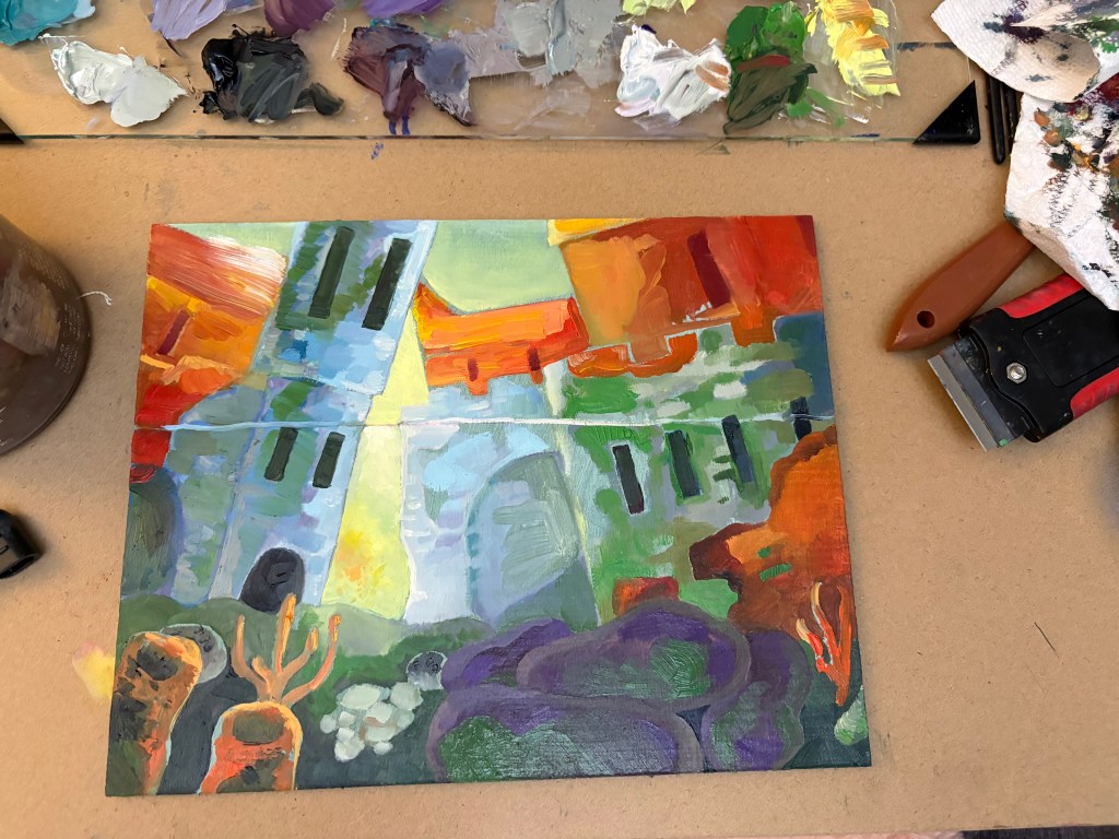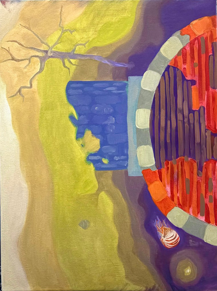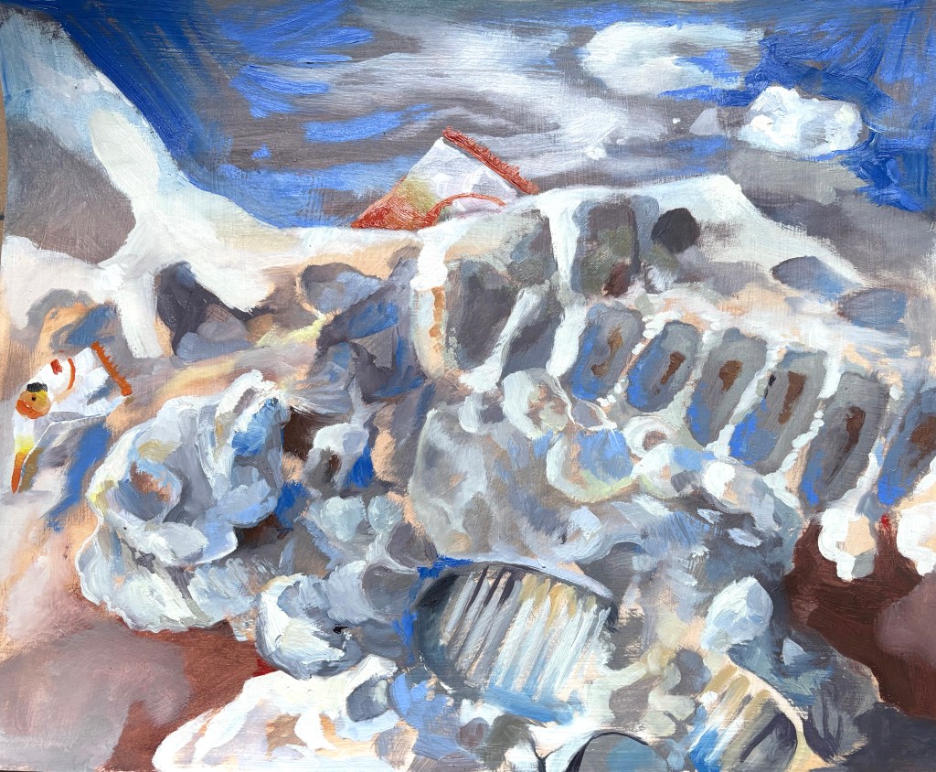 Tulips 5/28/25Snow Leopard 5/17/25In Your Walls with Pollen (oil on canvas, 12 x 36 in) 9/10/25Snack on the Ground 2/3/26My Box 4/5/25Gets me through class 4/14/25View through water 1 2/23/26View through water 2 2/23/26View though water 3 2/22/26Reconstructed Part 1 2/5/26Reconstructed Part 2 2/7/26Reconstructed Part 3 2/9/26Mission 1 9/11/25Memory of Corfe 12/24/25Me and my son (Stretched Canvas, 3 x 3 ft) 12/9/25Bee Man’s Night Off (Stretched canvas, 3 x 3 ft) 5/4/25Stuff that keeps me safe 11/17/254/11/254/16/25First Oil Painting- Foggy Despairscape (oil on masonite)Crumpled paper4/12/25Left Hand 4/5/25Right Hand 4/4/25Self Portrait, 2024 (gouache, life size) 11/5/24Cherry Tree (Rebel A) 2023Grumbot Magazine Cover Vol. 14/16/25Together in the End (Grad Cap) 5/30/24Bird Frankenstein Page 1Rose VortexPillar MechanicsLeaves